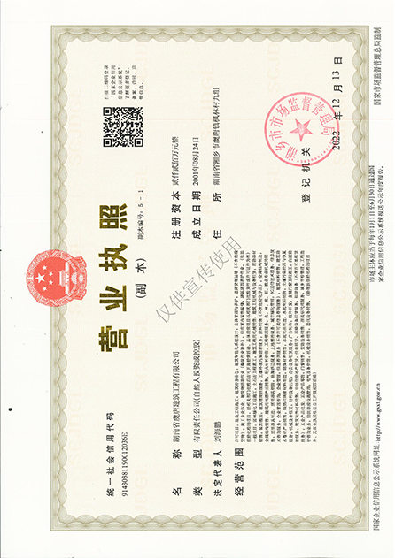 鋼結(jié)構(gòu)專(zhuān)業(yè)承包叁級(jí)、環(huán)保工程專(zhuān)業(yè)工程承包叁級(jí)、承裝(修、試)電力設(shè)施四級(jí)、路面養(yǎng)護(hù)乙級(jí)資質(zhì)、橋梁養(yǎng)護(hù)乙級(jí)資質(zhì)、隧道養(yǎng)護(hù)乙級(jí)資質(zhì)、交通安全設(shè)施養(yǎng)護(hù)乙級(jí)資質(zhì)、施工勞務(wù)不分等級(jí)等多項(xiàng)施工資質(zhì)。